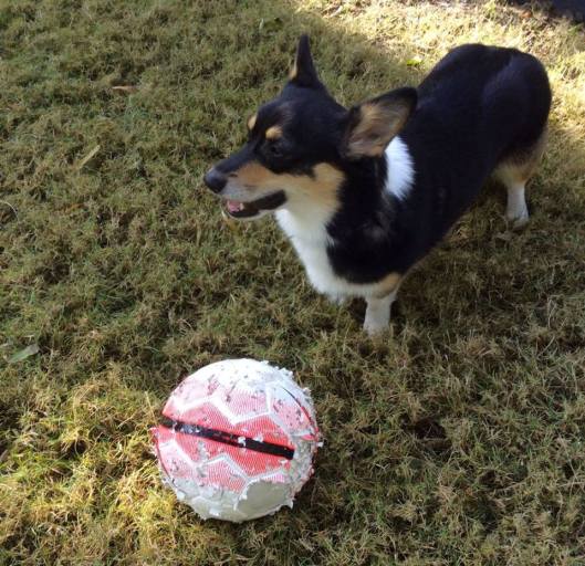 Molly, aka the Thing of Evil, plays the game her way: first you score, then you eat the ball.