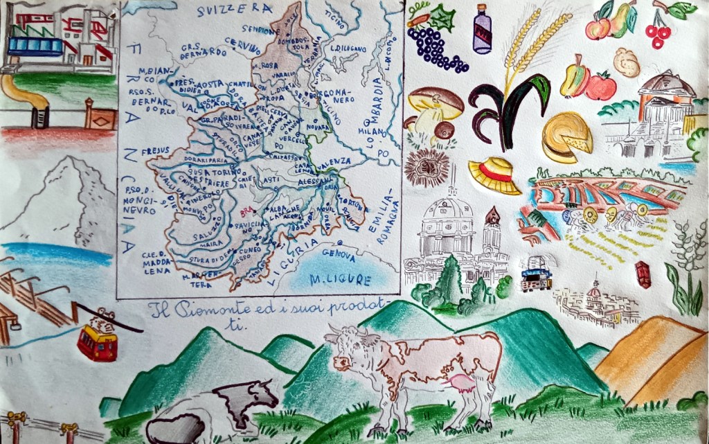 Quando iniziammo a studiare la geografia, fu la volta delle cartine delle regioni e degli stati, corredate da monumenti, prodotti e altri elementi tipici della zona.